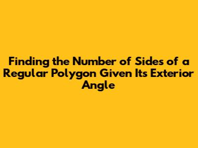 To make this even clearer, think of a square. A square has four sides, and each of its interior angles is 90 degrees. Therefore, each exterior angle is also 90 degrees (since an exterior angle and its adjacent interior angle form a straight line, adding up to 180 degrees). If you add up all four exterior angles (90 + 90 + 90 + 90), you get 360 degrees. Now, if you know that each exterior angle is 90 degrees, you can find the number of sides by dividing 360 by 90, which gives you 4—the number of sides of the square. This principle applies to all regular polygons, whether they have 3 sides (an equilateral triangle) or 100 sides. Understanding this concept is crucial for tackling problems involving polygons and their angles, so make sure you've got a good grasp of it before moving on.