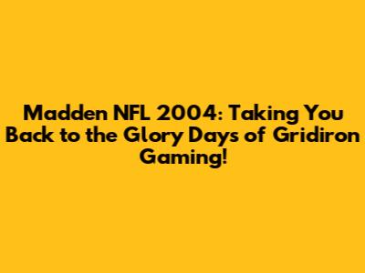 Madden NFL 2004: A Blast From The Gridiron Past!